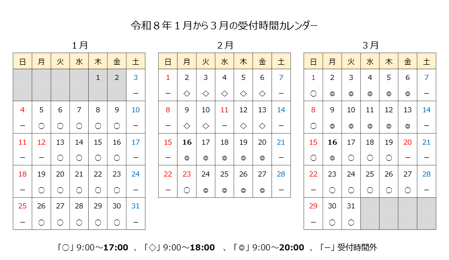 ・2月16日(月)~3月16日(月) 月曜日~金曜日(休祝日を除く。) 9時~20時