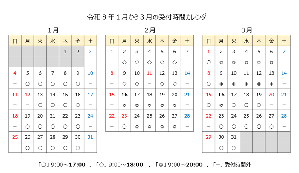 ※受付時間は、8時30分~17時(土日祝日及び12月29日~1月3日を除きます。)です。